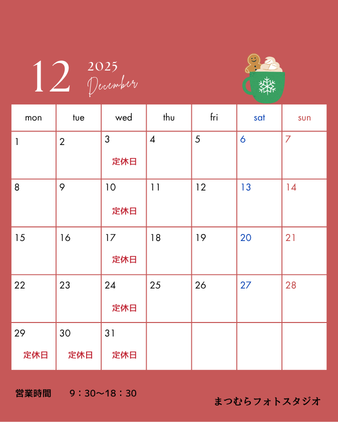 12月の営業日をご案内いたします。